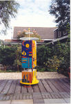 1999'feestmeubel' (met geheime laadjes, wenslaadjes ed.), uitgevoerd in opdracht van de basisschool 'De Tweemaster' in Vijfhuizen. Ontwerp,uitvoering, techniek: Nico Kamberg Kleur, beeld, uitvoering: Lidia Verschoor